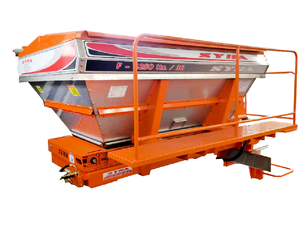 Tolva: de chapa con pintura epoxi-poliuretánica. Removedor interno, rejilla antiaglomerado.